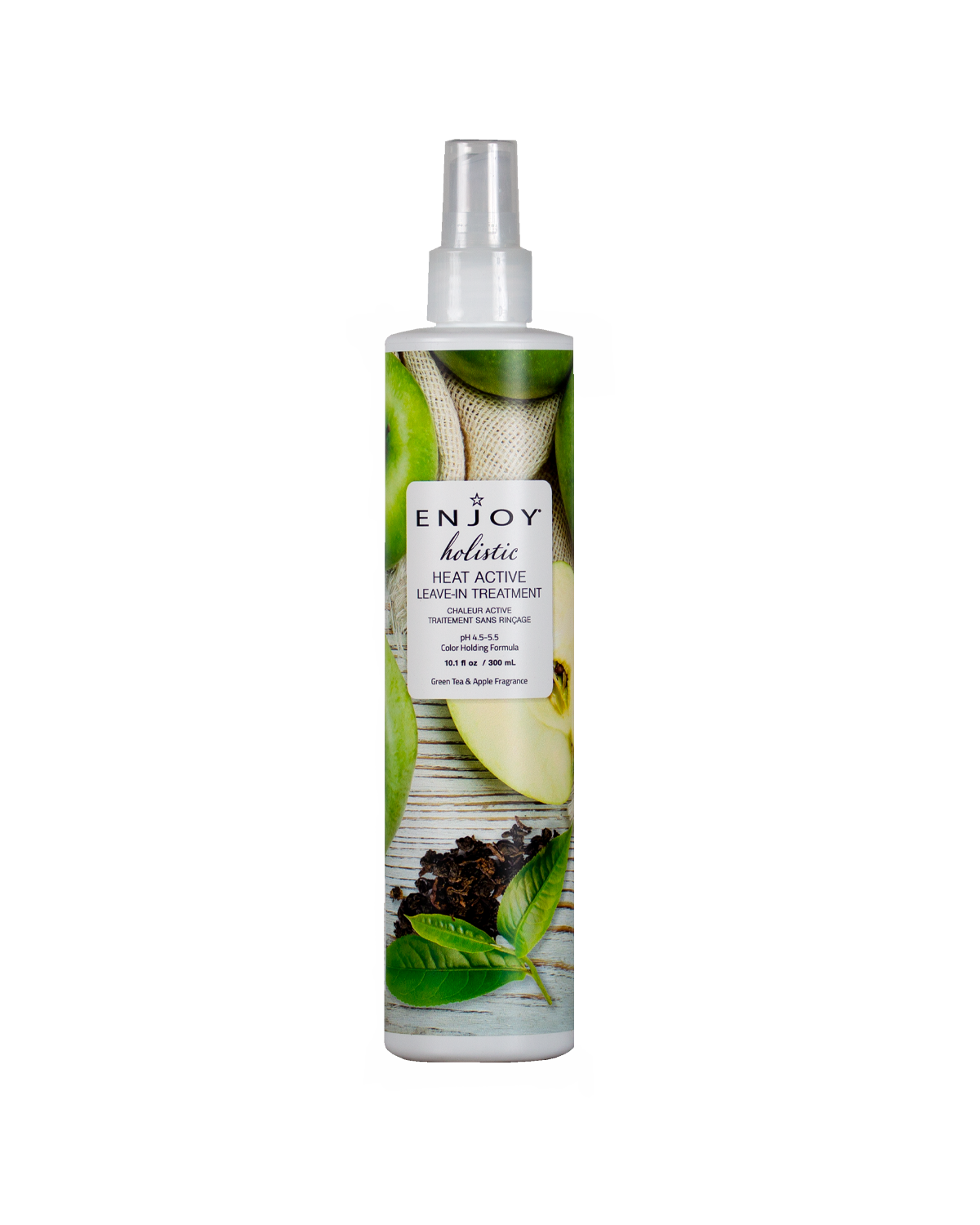 Safeguard your hair from thermal damage with ENJOY Holistic Heat Active Leave-In Treatment. This advanced formula activates with heat to provide superior shine, protection, and softness. Ideal for all hair types, it helps maintain hair health during heat styling, making your hair look and feel its best. Infused with the crisp scents of green tea, green apple, melon, and peach, our Heat Active Leave-In Treatment brings a refreshing boost to your hair care routine.