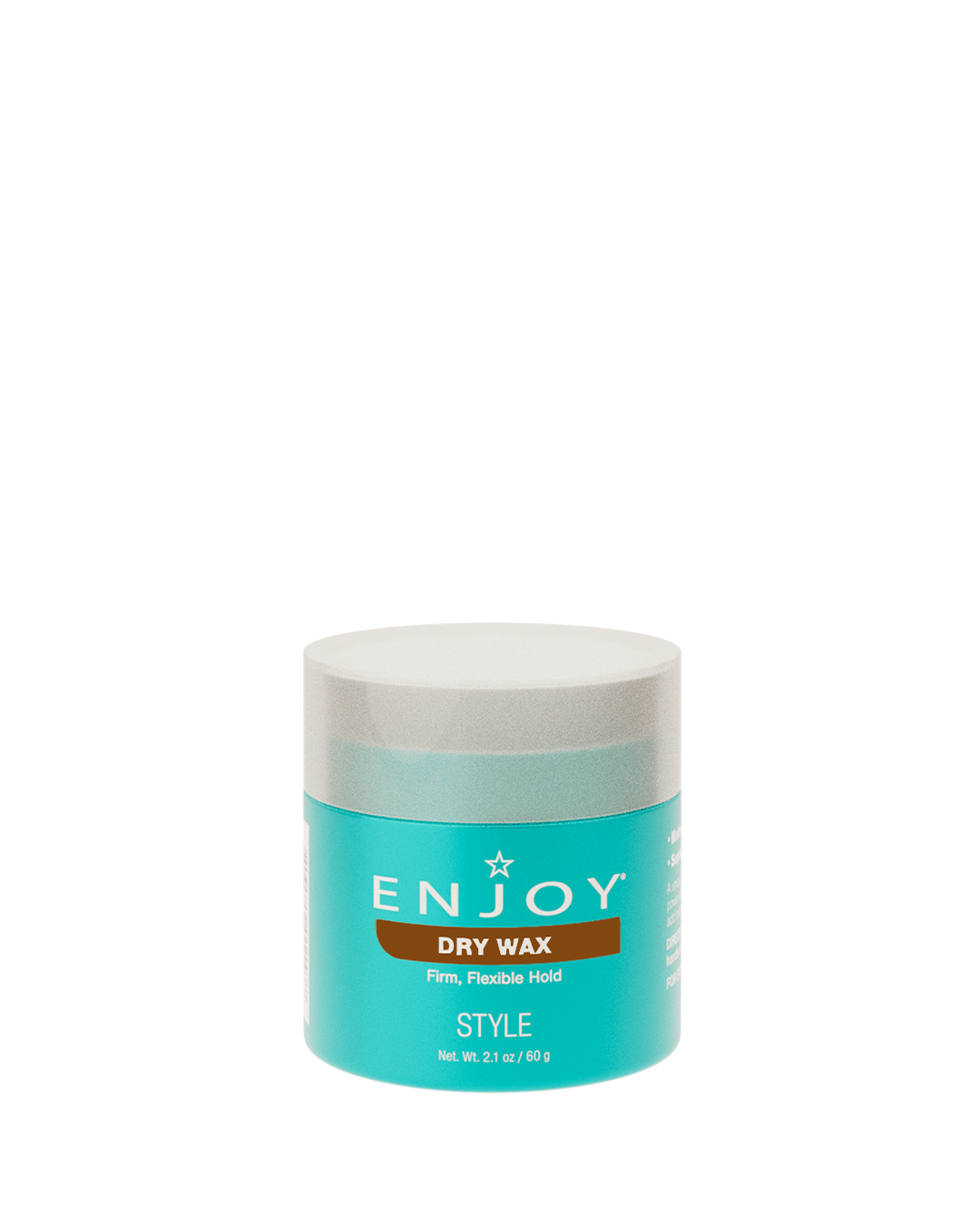 Discover versatile styling with ENJOY Dry Wax. This non-greasy wax has a pliable texture that allows for re-moldable styles without buildup. Enjoy a firm, flexible hold with a natural, matte finish, perfect for creating stylishly understated looks.